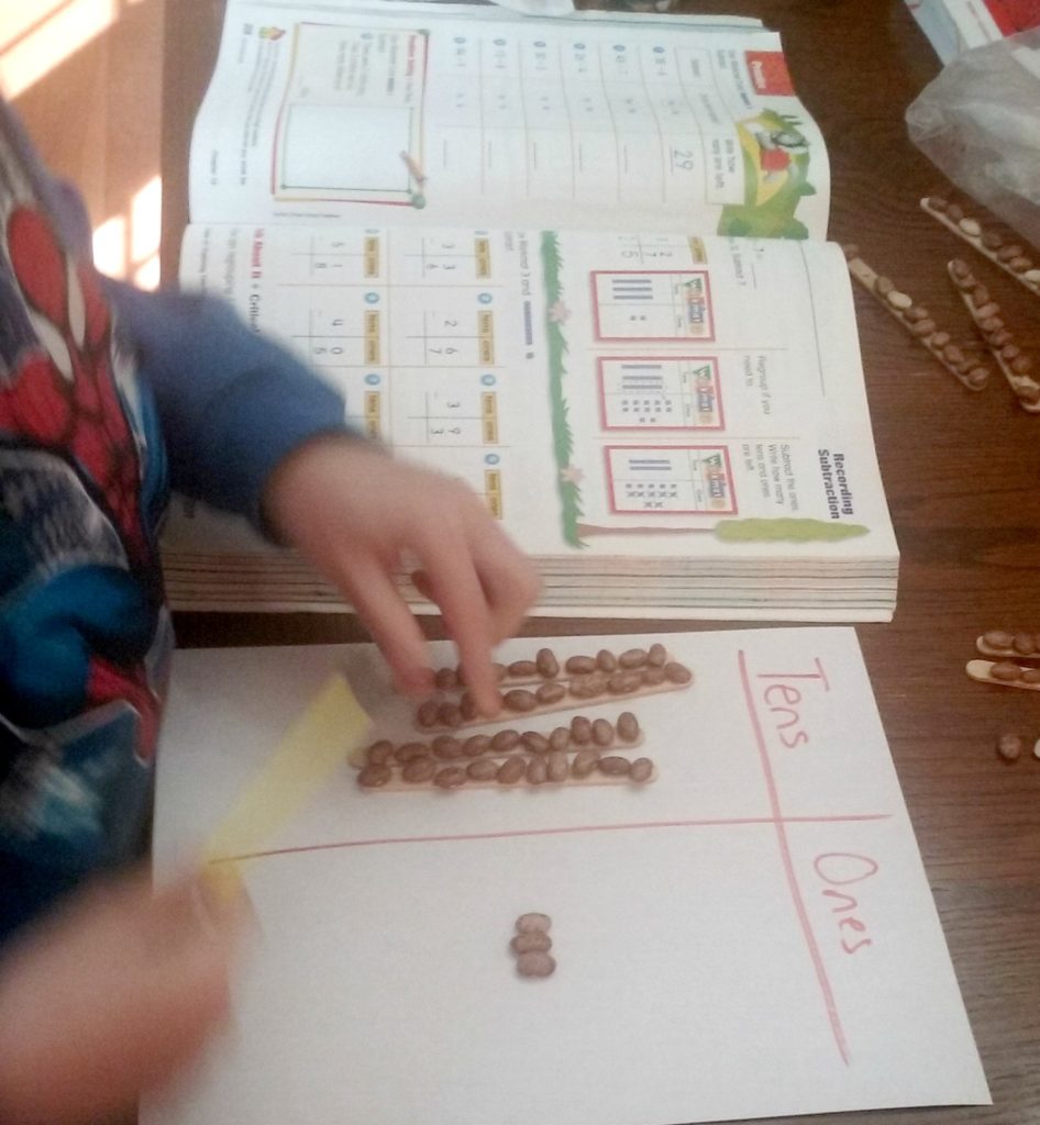 with regrouping. My boys loved making our base ten bean counters and still enjoy using them each time we practice place value.