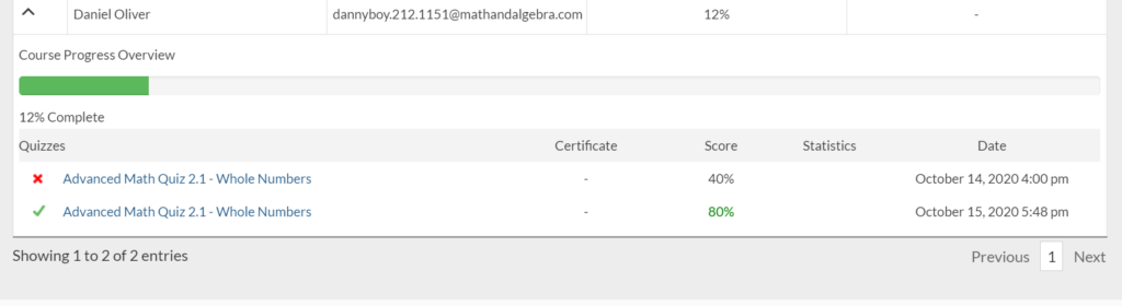 MathandAlgebra.com has been a perfect for my oldest son’s homeschool math curriculum. We had been using another online based math program that we liked before we decided to give this a try. I have seen that MathandAlgebra.com has provided my son, Daniel with a better mix of online based instruction and paper and pencil practice work for him. The instructional videos are shorter and very direct which works well for him. As their parent/teacher I am satisfied that I can easily monitor his progress by checking his daily written practice, and seeing the scores on the quizzes he takes in the Reports section of my Dashboard. There I can also monitor his progress through the course.