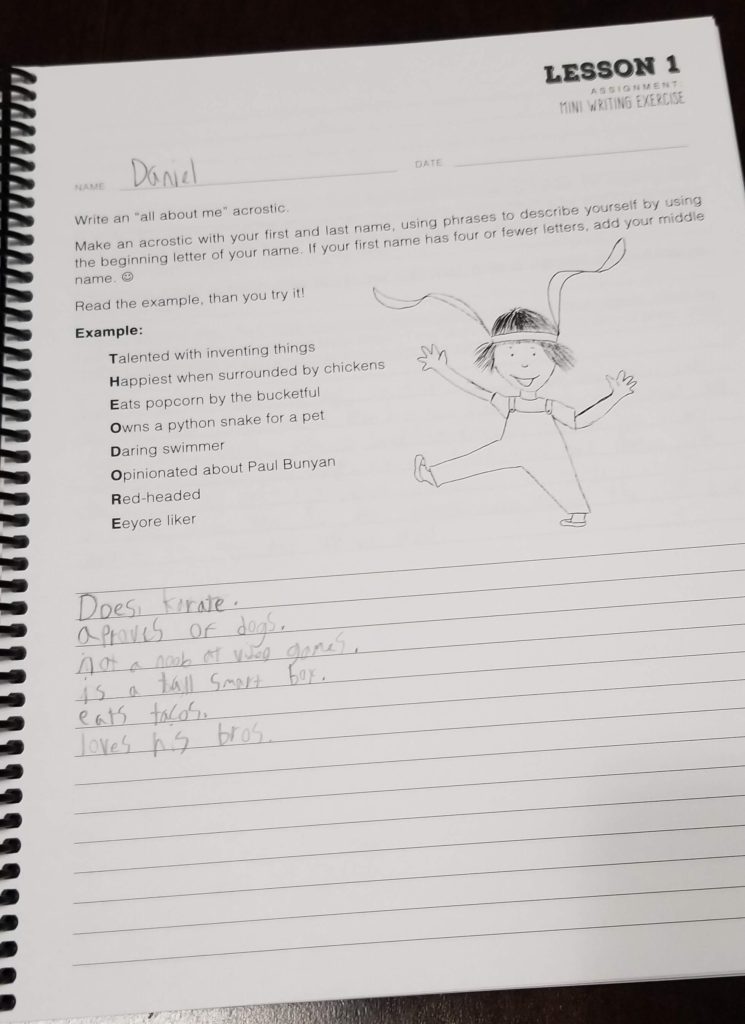 Several of the mini writing lessons have a star symbol on them, which means it is considered a gold piece. That means students should edit and make corrections on this writing. These are the writings that also can be graded. I loved that not every piece is requires edits and rewrites in this curriculum. My oldest needs the experience of editing his writing but often get frustrated when doing it every time he writes creatively. This way it is only done on a few of the most important pieces in the curriculum and he doesn’t get bogged down editing every lesson.