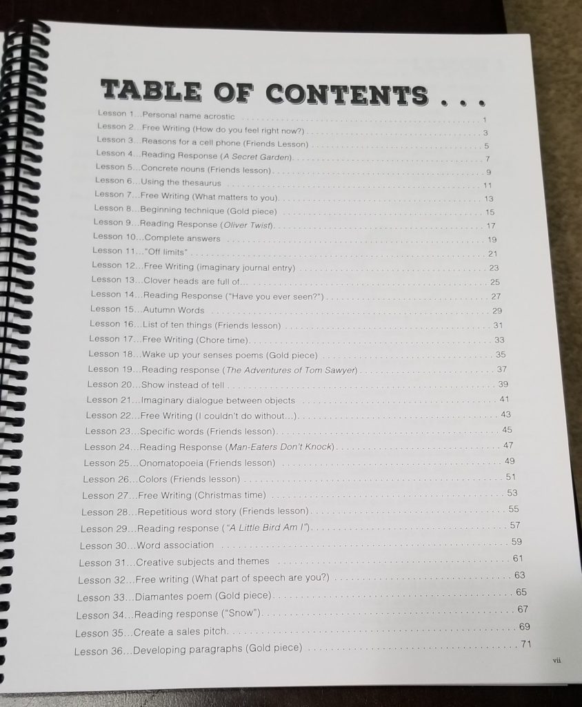 Sparkling Bits of Writing uses 3 different kinds of lessons to inspire creative writing. These are clearly outlined and explained how to complete in the instructions.