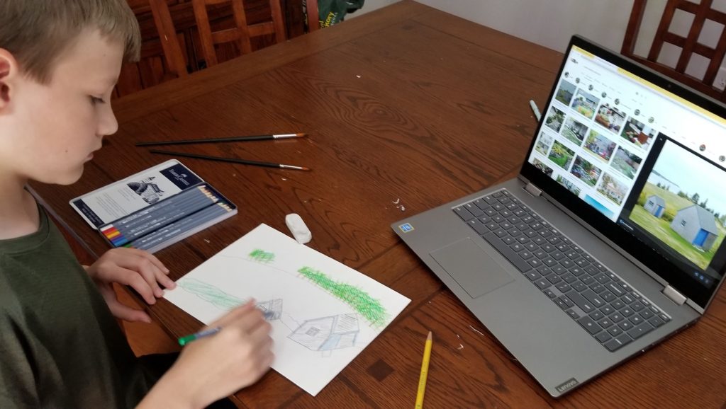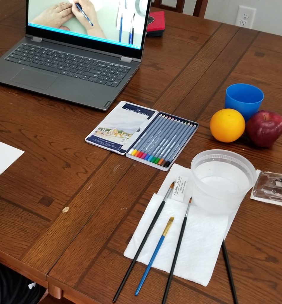 The course does not come with the art supplies needed. However, ARTistic Pursuits does offer a bundle of all the supplies needed. However, the only supplies that were needed for this course that we didn’t already have were watercolor pencils. I bought these separately. Definitely look at the required materials list and make sure you have all you need for the course. ARTistic Pursuits‘ supplies bundle would be a good deal if you needed to purchase all the required art materials and tools.