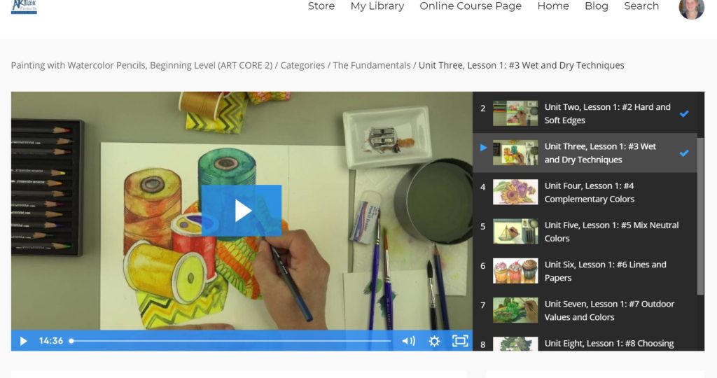 Each time you want to do an art lesson, simply start with your book first. The lesson will tell you right at the beginning if there is a video to watch corresponding to the lesson. Some lessons are video based, and other are text-based. There are Video Lessons included in each of the units to demonstrate proper use of the watercolor pencils, and painting techniques. The videos are short but informative and very well done. My son enjoyed watching the videos and being able to then practice the technique afterwards. The video lessons were definitely my sons favorite part because of the direct instruction.