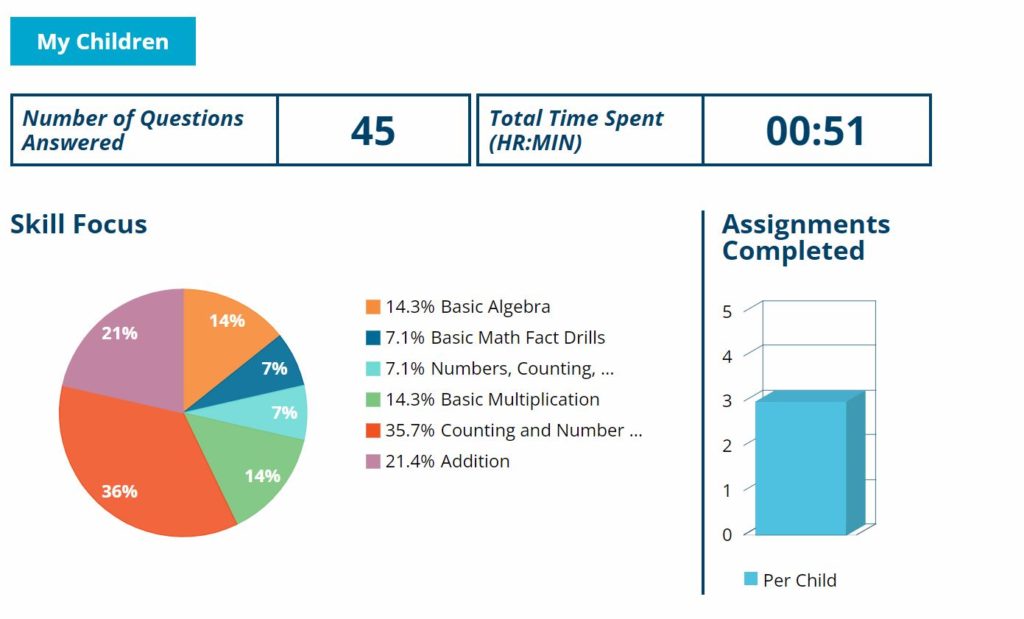 When your student logs in to their account, they immediately see their assignments. Assignments can have specific due dates or can be posted until completed. I liked that the students can work on any grade level assignments you choose for them. Your child can go back and review skills they need more practice on. Also, they can work ahead on more challenging lessons.