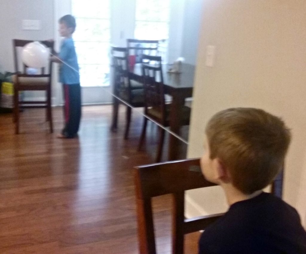 For the last few weeks we have been exploring Forces and Motion. This is a favorite topic of my kids. My boys love to build, “invent,” and see how things work. They have learned about gravity, how things move, and using simple machines. This week with our co-op group we did a group lesson on using air as a force to make things move. We made straw rockets, balloon rockets and had a BLAST, literally!